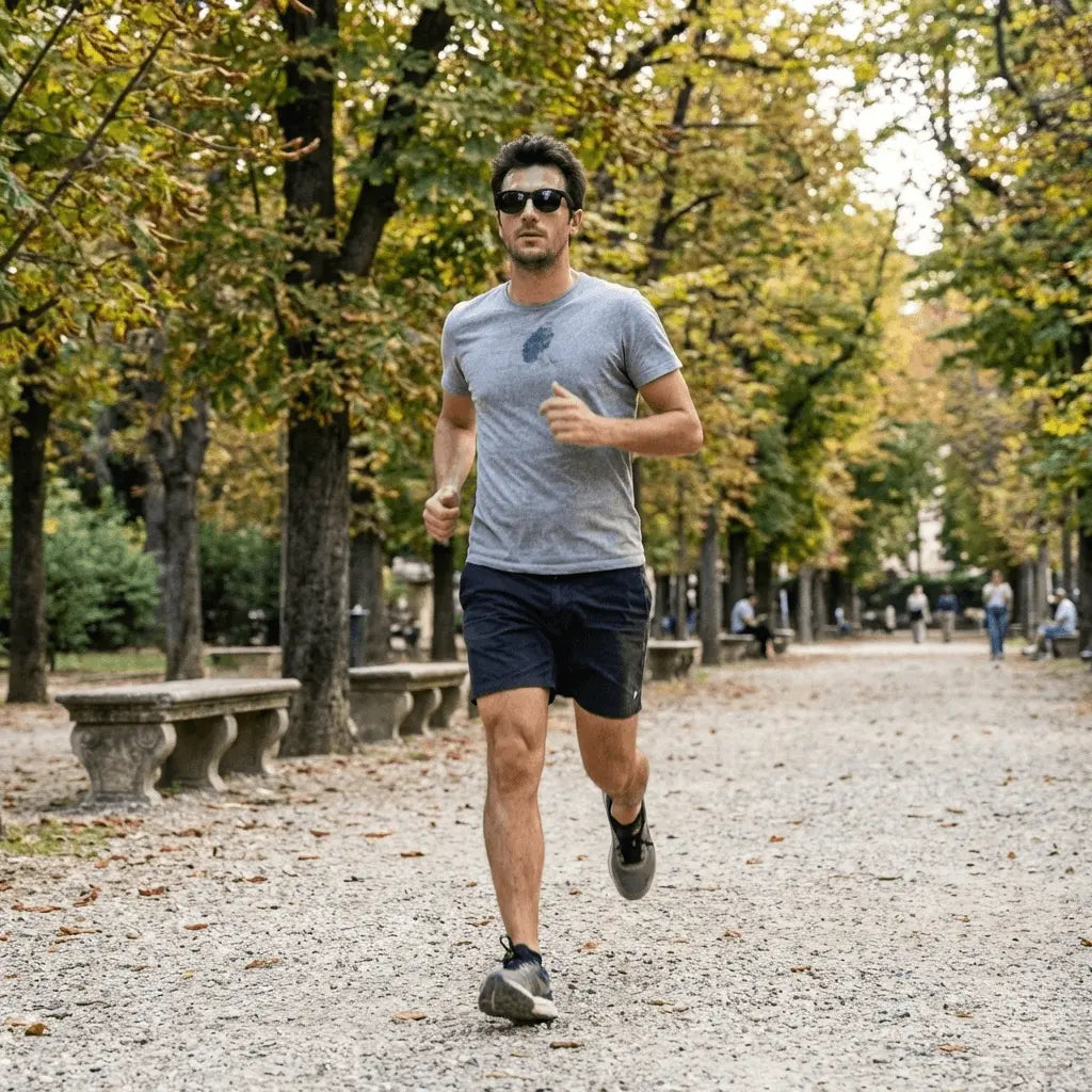 Sì. La montatura è progettata per aderire in modo naturale al viso senza stringere. Rimangono stabili durante camminata veloce, corsa leggera, palestra o guida.